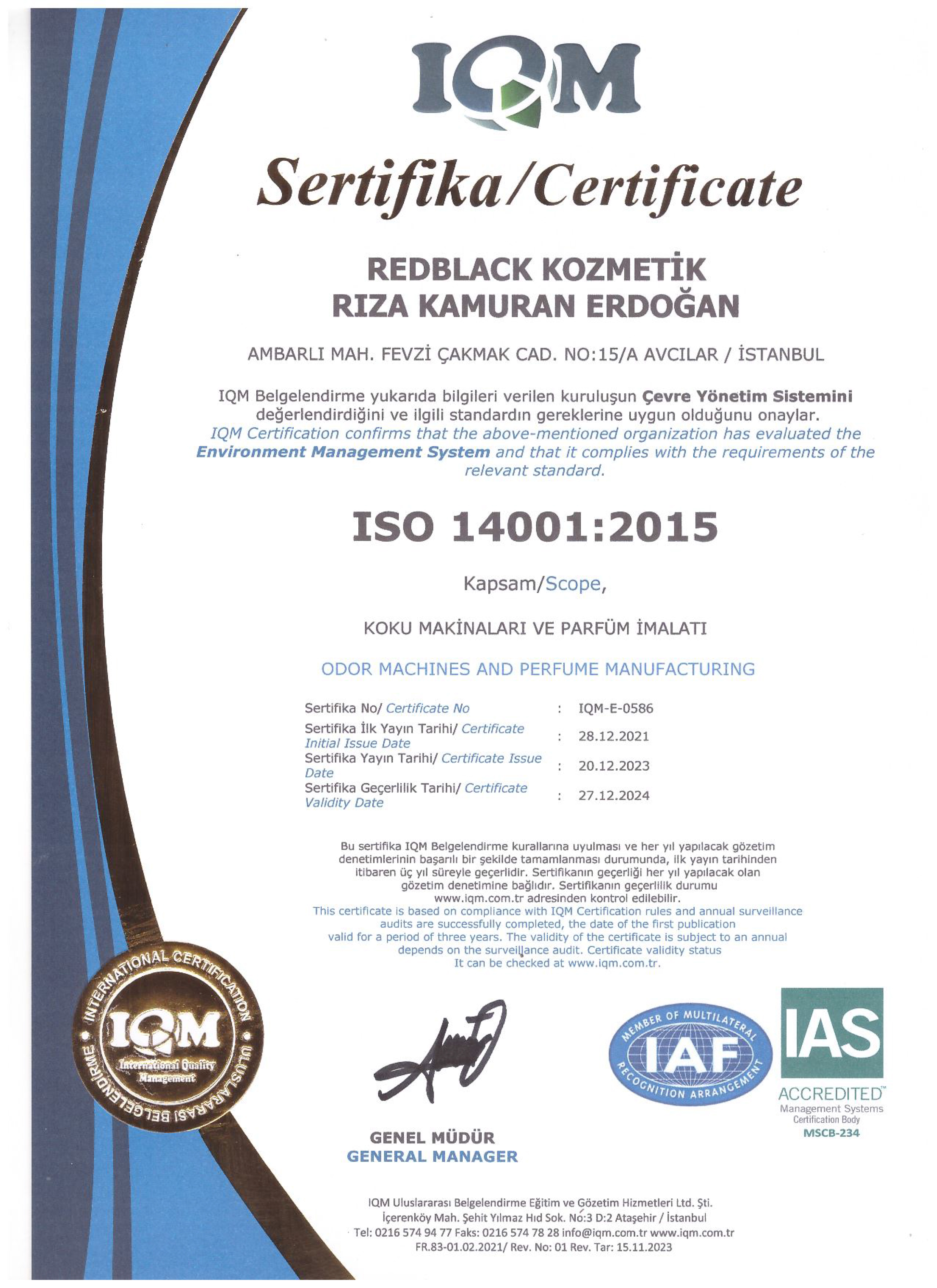 • ISO 14001:2015 SERTİFİKA