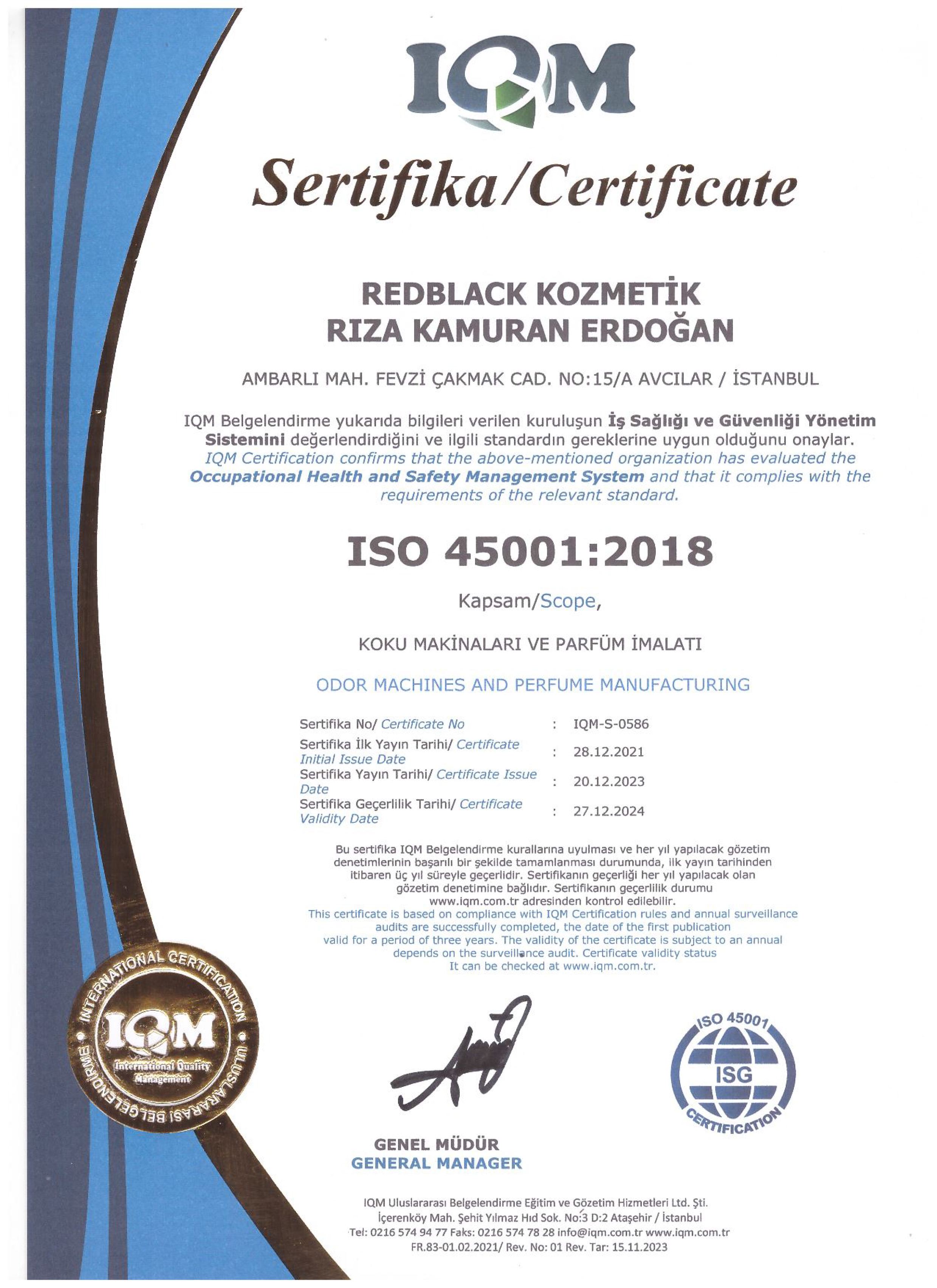 • ISO 45001:2018 SERTİFİKA
