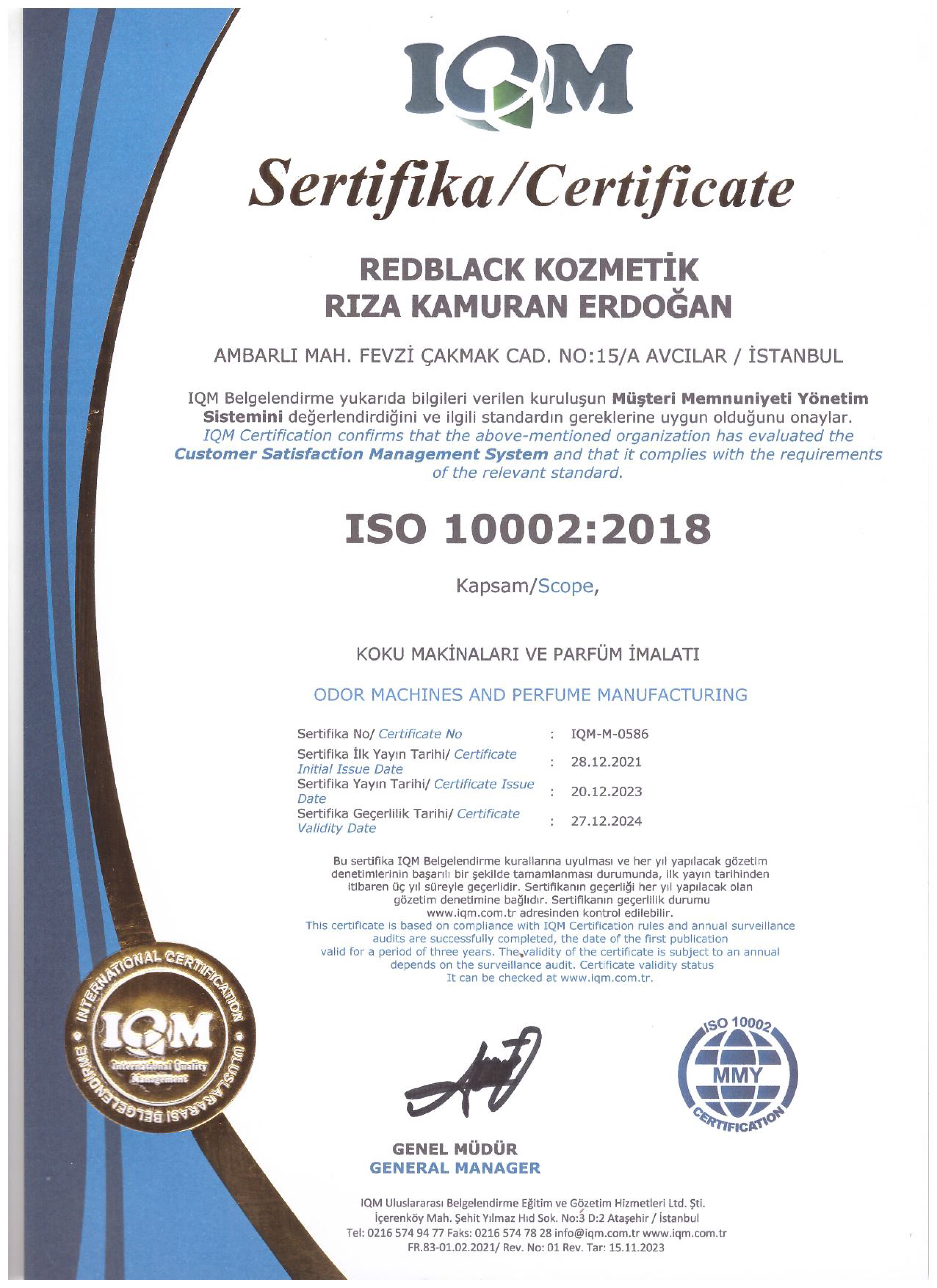 ISO 10002:2018 SERTİFİKA